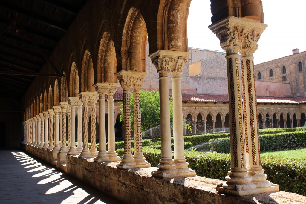 La Iglesia es de arquitectura normanda y en su interior puedes apreciar mosaicos de influencia bizantina que representa escenas del antiguo testamento, puedes subir arriba y pasear por la parte superior de tejado de la iglesia y visitar el claustro, en el que cada capitel es diferente, es una obra unica de la Sicilia Medival.
